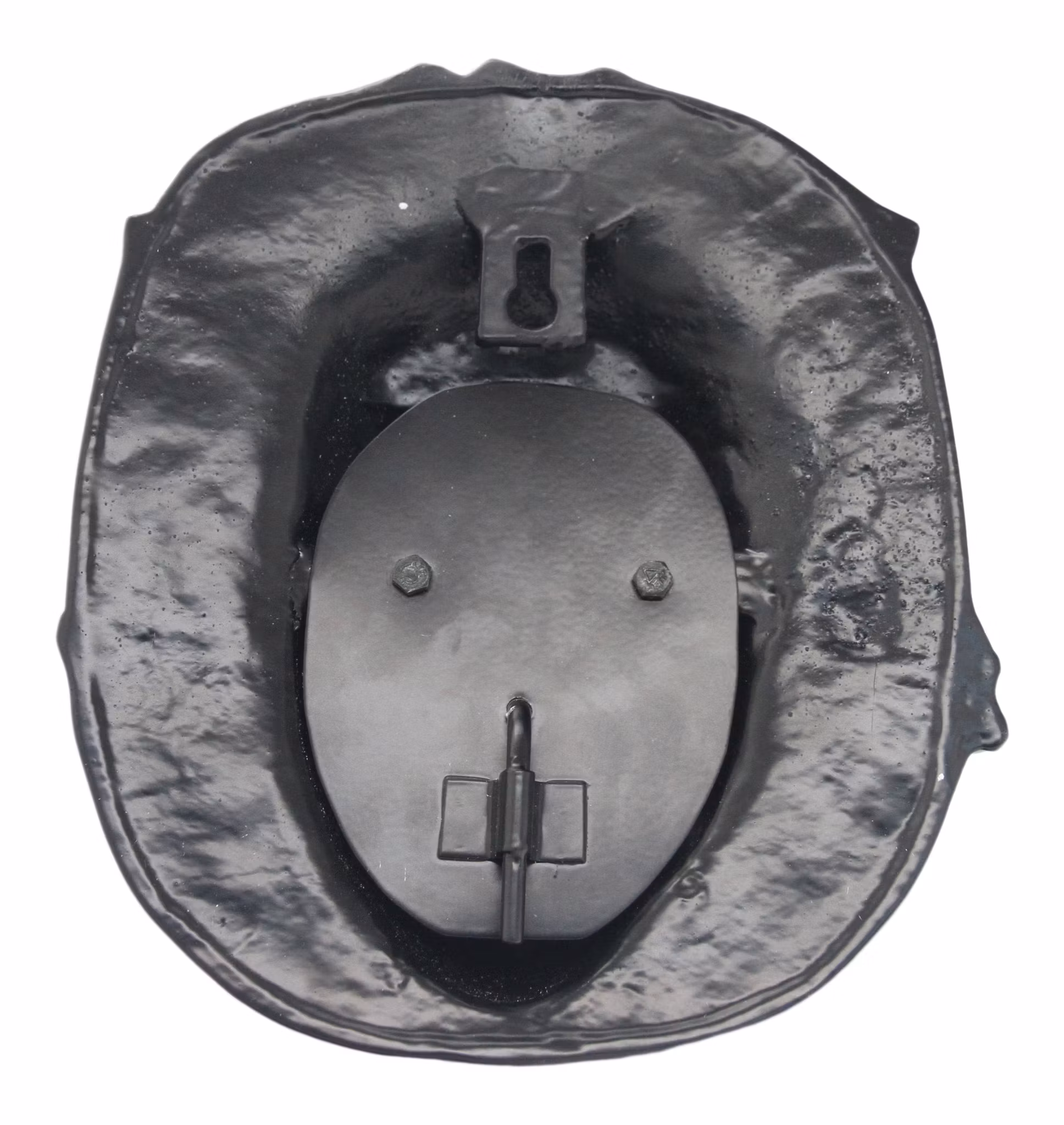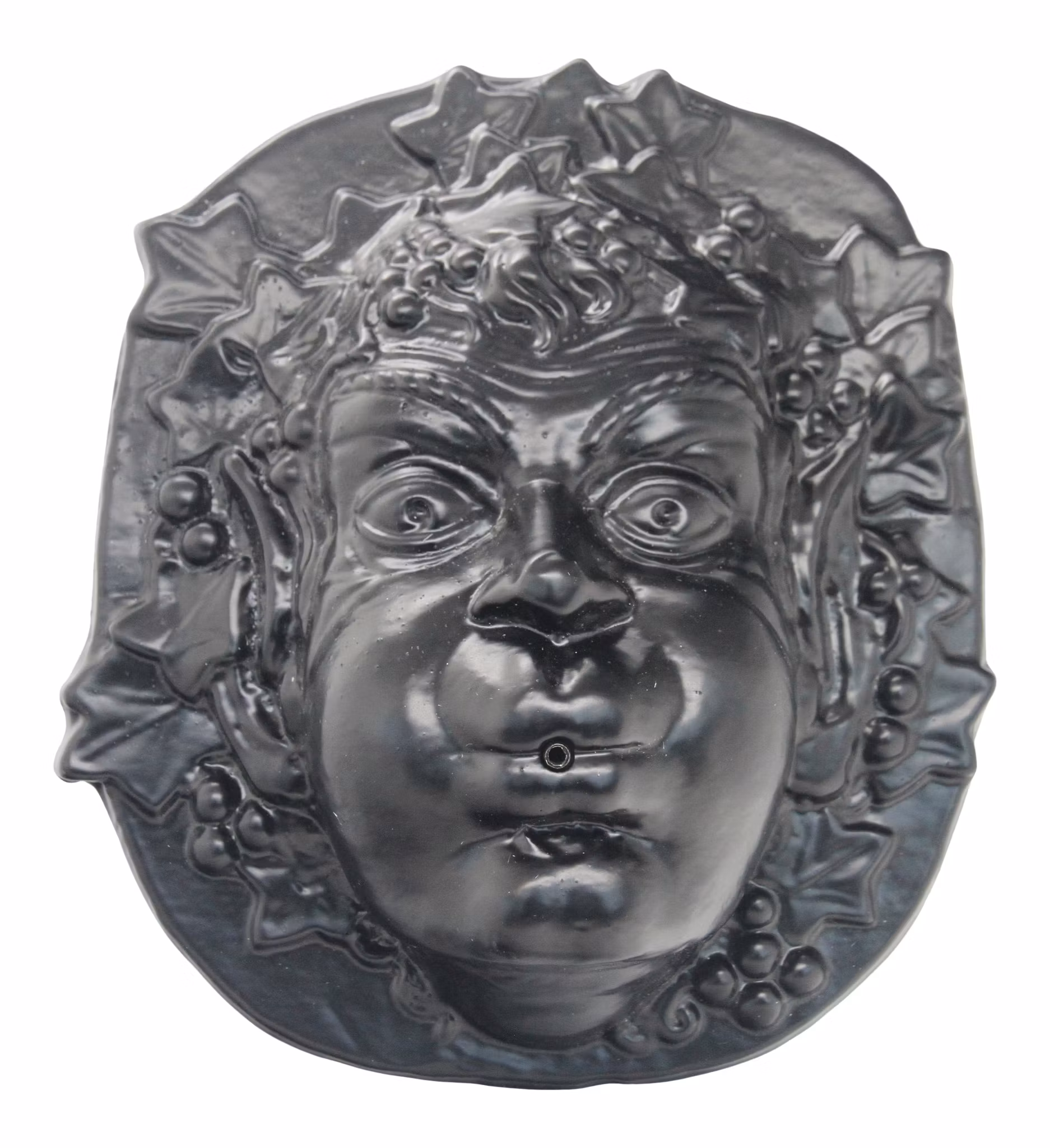 Klassische Wandbrunnen 30cm mit Cherubengesicht aus matt schwarz lackiertem Aluminium. Elegante Gartenfontäne für Wandmontage mit ruhigem Wasserspiel.
