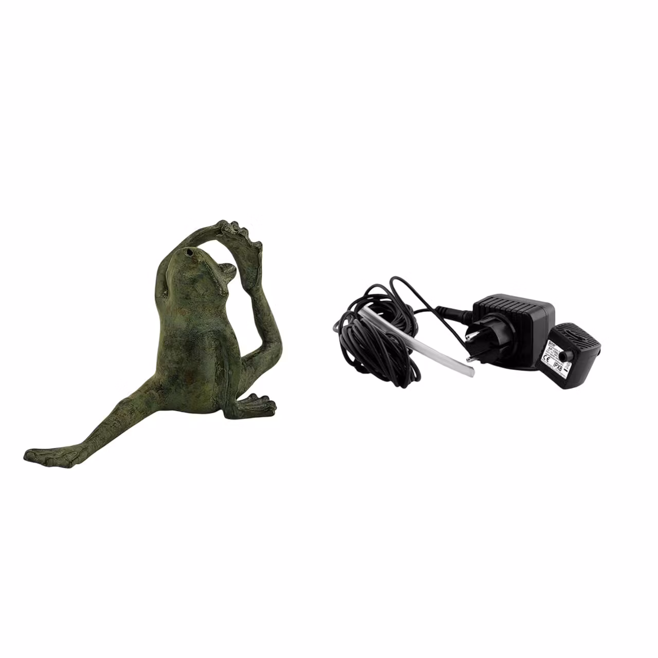 Im Paket enthalten ist eine ausdrucksstarke sitzende Froschfigur aus Bronze mit angewinkeltem Hinterbein. Die natürliche und dynamische Haltung verleiht der Figur Charakter und macht sie zu einem dekorativen Blickfang in Wasserschalen und Fontänenbecken. Mit einer Höhe von 10 cm einer Länge von 21 cm und einer Breite von 7 cm besitzt die Figur eine ausgewogene Größe und wirkt sowohl einzeln als auch in Kombination mit weiteren Elementen sehr harmonisch.
