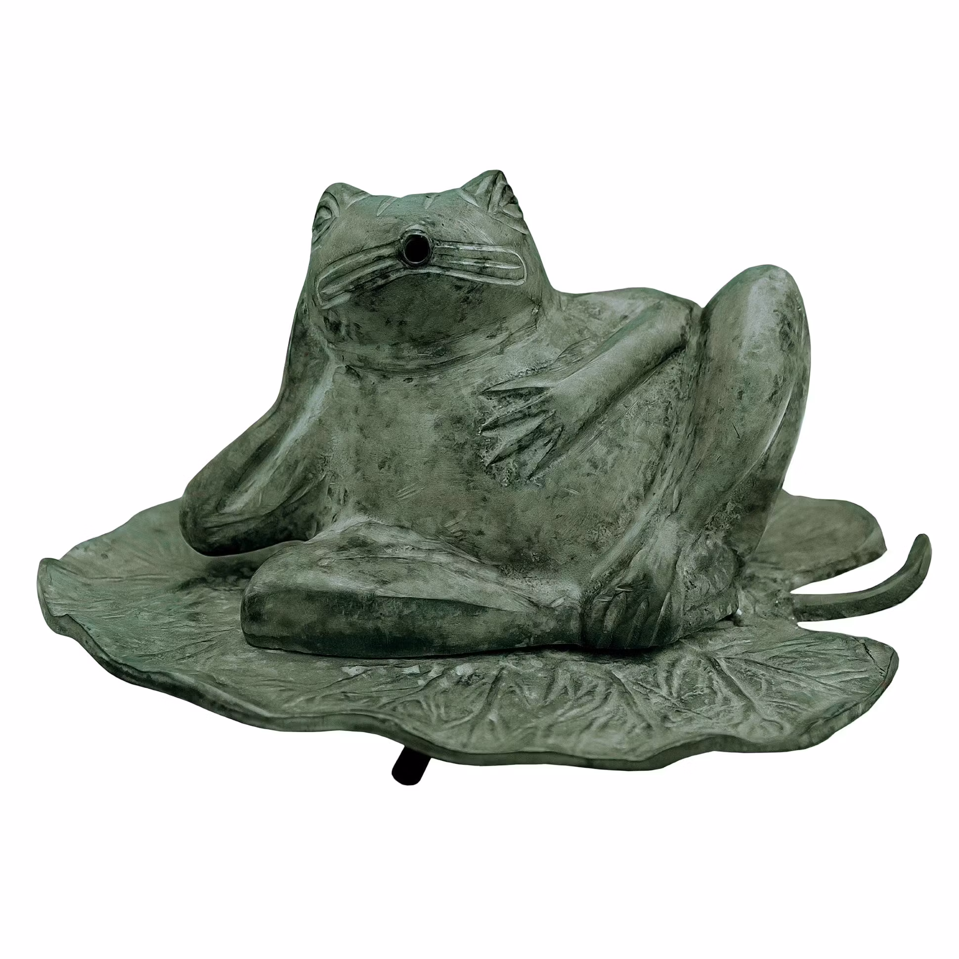 Froschbrunnen aus Bronze 21 cm liegend auf Blatt. Große dekorative Gartenbrunnen für Wasserschalen im Garten oder auf der Terrasse.