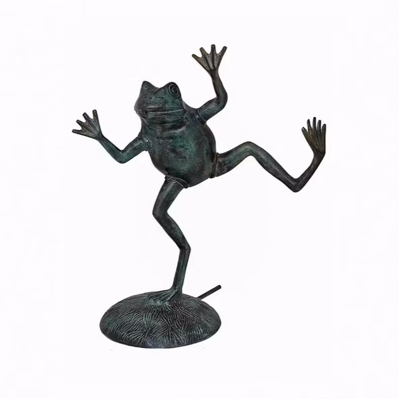 Große Froschbrunnen aus Bronze 40 cm mit verspieltem Ausdruck. Funny Frog ist eine fröhliche und dekorative Gartenbrunnen mit viel Charakter.